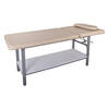 Кушетка массажная состоит из двух частей (верхняя и нижняя), высота верхней части регулируется при помощи механизма зацепления (замок и штанга), также в верхней части имеется отверстие для лица и мягкая заглушка. Кушетка предназначена для косметологических процедур и массажа. Обивка искусственная кожа. Нижняя полка для хранения расходных материалов изготовлена из ламинированной ДСП.