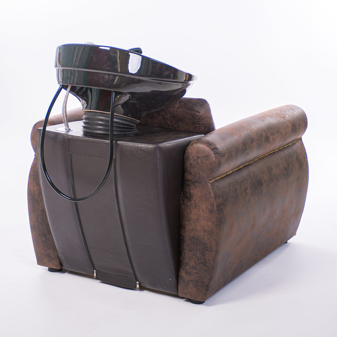 Глубокое удобное кресло с раковиной и обивкой из качественной искусственной кожи, для парикмахерских и салонов красоты. Декорировано изящными металлическими элементами. Обивка прочная и долговечная, водостойкая. Можно установить любую керамическую мойку, поскольку в кресле предусмотрены универсальные отверстия для подключения раковины.