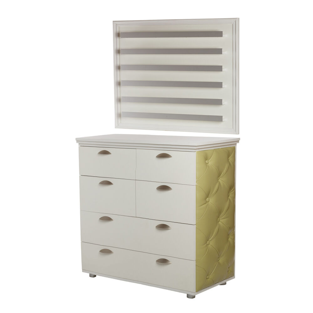 Навесная полка выполнена на едином основании из ламинированного ДСП с отделкой по периметру декоративным молдингом. На основании установлены шесть полочек с ограничителем (бортиком) из матового алюминия.