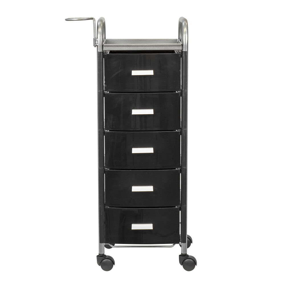 В выдвижных ящиках специалист может разложить все свои инструменты, аксессуары и расходные материалы. Верхняя полка предназначена для приспособлений, используемых во время процедур. Благодаря широкому выбору расцветок можно подобрать декор, который будет гармонично сочетаться с остальной мебелью в салоне. За счет встроенных колес парикмахерское оборудование можно перемещать в любое удобное для работы место.